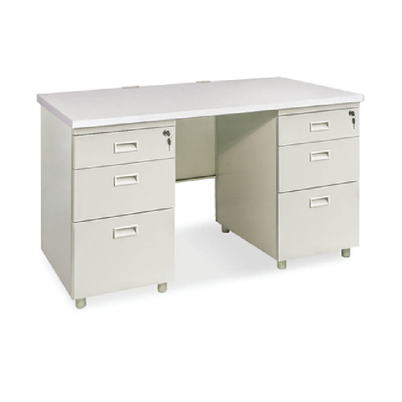 Bàn Làm Việc Cá Nhân, Bàn Hộc Liền BS14H thuộc dòng bàn sắt văn phòng 1,4m hai hộc liền, mỗi hộc có 3 ngăn kéo sử dụng khóa dàn, mặt bàn gỗ công nghiệp phủ Melamine hoặc Laminate. Chân, yếm, hộc 3 ngăn kéo bằng sắt sơn tĩnh điện. Bàn Làm Việc BS14H có đế chân tăng chỉnh độ cao.