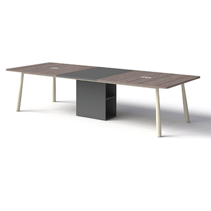Bàn họp 1.8m, 2m4 hoặc 3m2 kiểu chân gậy bóng chày, chân sắt sơn màu đen sần hoặc kem, thanh giằng hộp 25x50. Mặt bàn gỗ MFC dày 25mm chống xước, chống cong vênh, mối mọt, bền bỉ theo thời gian. Có nhiều màu sắc lựa chọn phù hợp sở thích, màu chủ đạo văn phòng. Bàn 3m2 có hộc tủ ở giữa làm chân bàn.