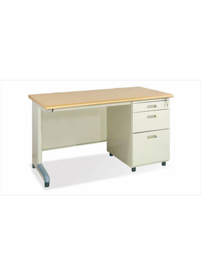 Bàn Làm Việc, Bàn Hộc Liền BS12H thuộc dòng bàn sắt hộc liền 1,2m không khay, mặt bàn gỗ công nghiệp phủ Melamine hoặc Laminate. Chân, yếm, hộc 3 ngăn kéo bằng sắt sơn tĩnh điện, mặt trước của hộc dập bo cạnh tròn. Bàn Làm Việc BS12H có đế chân tăng chỉnh độ cao.