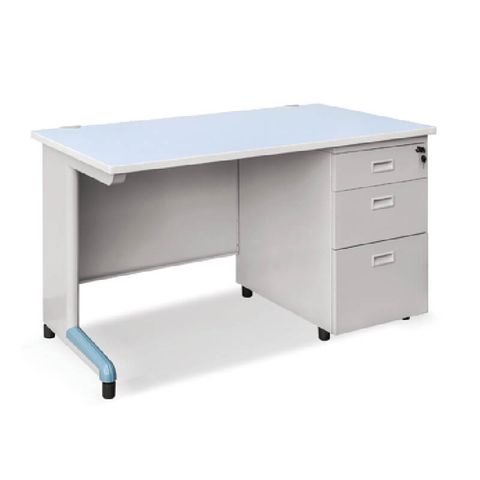 Bàn Làm Việc, Bàn Hộc Liền BS14HK1 thuộc dòng bàn sắt hộc liền 1,4m không khay, mặt bàn gỗ công nghiệp phủ Melamine hoặc Laminate. Chân, yếm, hộc 3 ngăn kéo bằng sắt sơn tĩnh điện, mặt trước của hộc dập bo cạnh tròn. Bàn Làm Việc BS14HK1 có đế chân tăng chỉnh độ cao.
