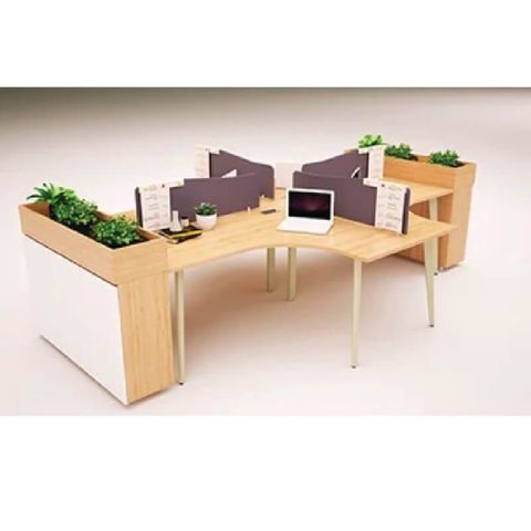 Cụm Bàn Làm Việc 1902BL14-4 là bàn làm việc 4 người ngồi, chân sắt tấm gấp, thanh giằng hộp 25x50 được liên kết với nhau bằng khớp nối nhôm, phần sắt sơn tĩnh điện màu kem. Cụm Bàn Làm Việc 1902BL14-4 phần mặt bàn làm từ gỗ MFC phủ melamine dày 25mm sáng bóng.