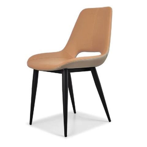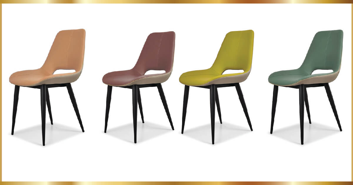 Ghế có đệm ngồi và tựa lưng bằng phôi cốt gỗ Plywood dày cao cấp siêu bền, bề mặt bọc mút và da PU nhiều màu theo bảng màu tùy chọn, khung chân ống tròn tóp côn Ø38, sơn tĩnh điện màu đen sần.