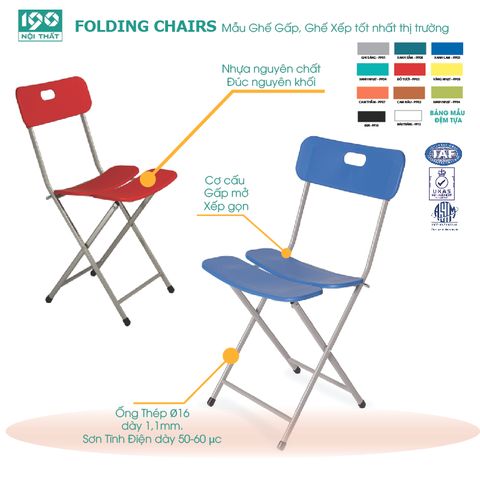 Ghế Xếp 3 lá GG03-S khung sơn mặt nhựa nhiều màu