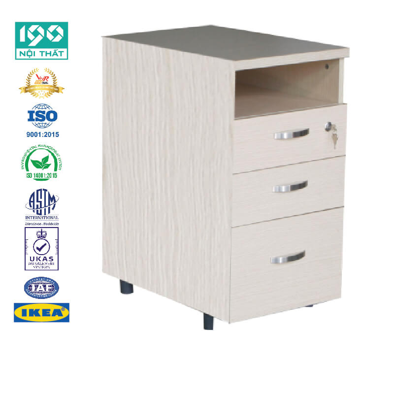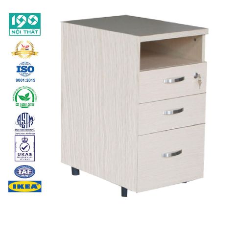 Hộc gỗ HG03 được thiết kế tiện lợi, linh hoạt với 3 ngăn kéo kết hợp với khoang trống làm bằng gỗ công nghiệp phủ Melamine, có khóa dàn, bánh xe di động.